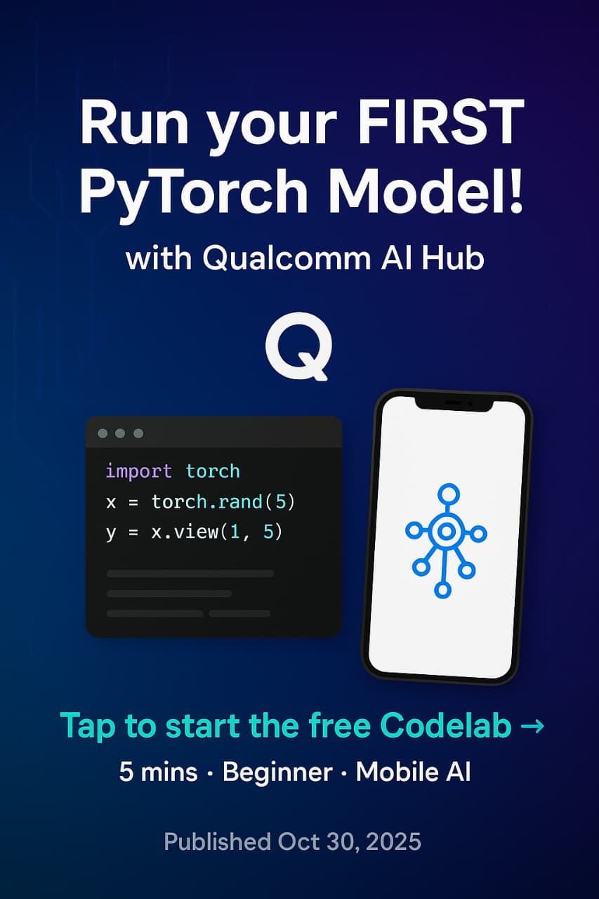 This codelab walks you through using the Qualcomm AI Hub to run a typical PyTorch model on a Qualcomm device in the cloud. You'll discover how to: Create a development environment with a Google Colab notebook. Set up access to the Qualcomm AI Hub using an API key. Utilize the qai-hub Python client to automatically analyze a model's performance. Deploy a pre-optimized model, focusing on the MobileNet v2 network, and understand the outcome.